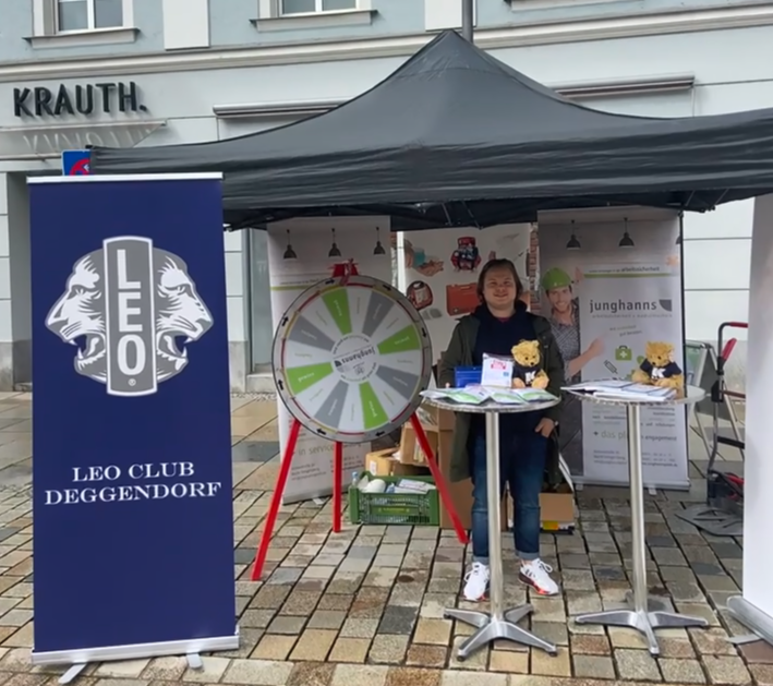 An einem sonnigen verkaufsoffenen Sonntag im Jahr 2023 war der Leo Club Deggendorf gemeinsam mit der Junghanns GmbH aus Hengersberg mit einer besonderen Aktion vor Ort: einem Glücksrad für den guten Zweck. 🌟